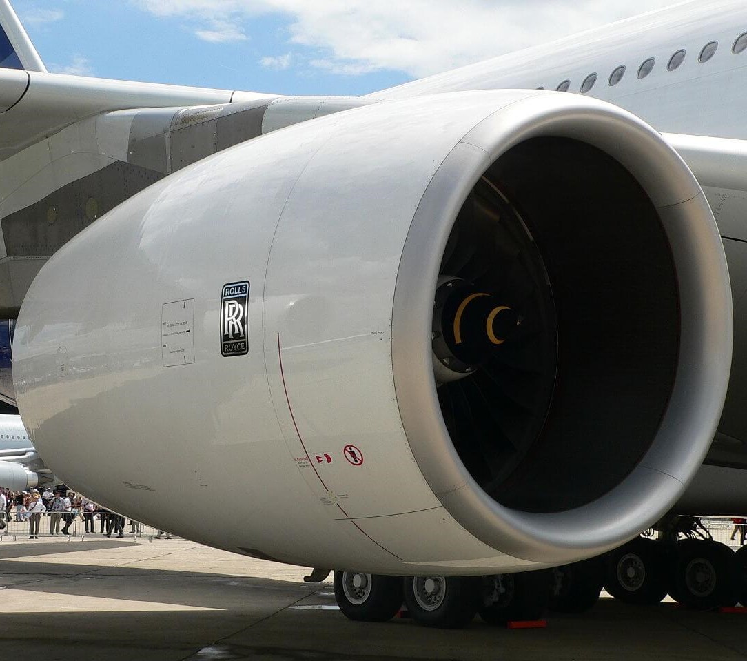 El A380 está equipado con cuatro motores turbofán, pero solo dos de ellos están provistos de inversores de empuje. Las aerolíneas tienen la posibilidad de elegir entre dos tipos de motores: el Rolls-Royce Trent 900 o el Engine Alliance GP7000. Con un empuje de entre 310 y 360 kN cada uno, son los motores más eficientes desarrollados para un avión cuatrimotor. El diámetro de los motores es de 2,95 metros, y aspiran una tonelada y media de aire por segundo.